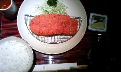 真生さんは上写真のオーソドックスなとんかつ定食を、岩ちゃんは一口(のサイズじゃなかったけど)ヒレカツ定食をいただきました。うまうまvv
