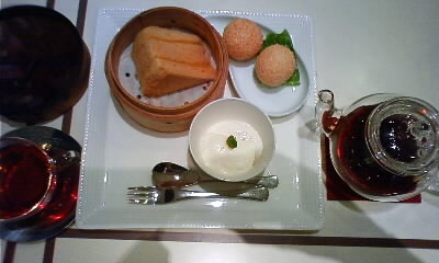 スイーツセットで御座いますv スイーツ3点+お茶で980円ナリ。蒸ケーキとゴマ団子がセットで、それにマンゴープリンか杏仁豆腐、カメゼリー、豆花のどれかを選べるのですが、私はお店のウリだという濃厚杏仁豆腐を、岩ちゃんは当初の目的通りマンゴープリンを選びました。ちなみにお茶は、ライチ紅茶で御座います。水果茶も捨てがたかった~~。