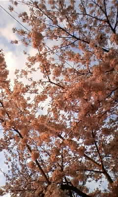 近所に、でん、と1本だけ生えているソメイヨシノで御座います。ただいま、8分咲きくらい♪でちょうど見頃なのですが、今日は朝というか早朝から風がすごくって、ぶわ~~っっ、と散っていました。今現在、地面が、桜の絨毯状態になっています。